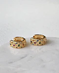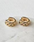Aros dorados tipo argolla con circonitas de distintos colores.