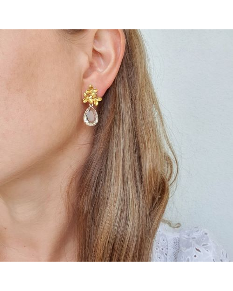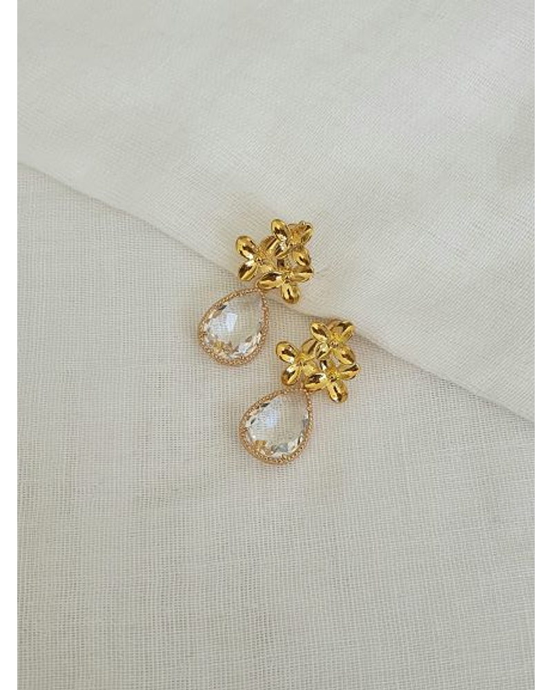 Aro dorado tres flores enchapado en oro con cristal transparente facetado.