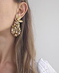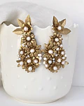Aros de fantasía dorados de flores y hojas bordados con perlas de río.