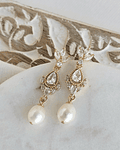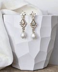 Aros dorados enchapados en oro sin níquel, de circonitas, centro vintage y perla natural de río.
