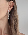Aros plateados de circonita enchapados en rodio sin níquel, con margarita de circonitas y colgante de circonita alargada.