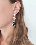 Aros plateados cierre tipo argolla con circonita y cristal azul