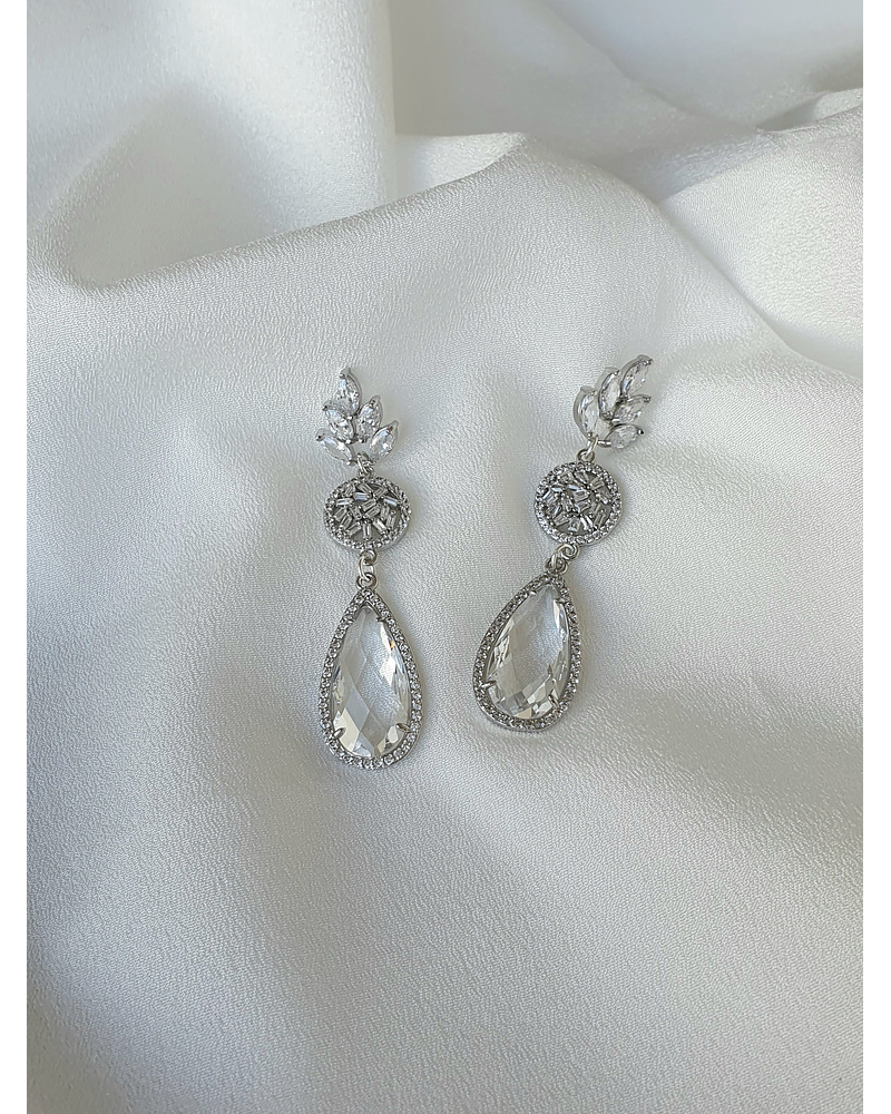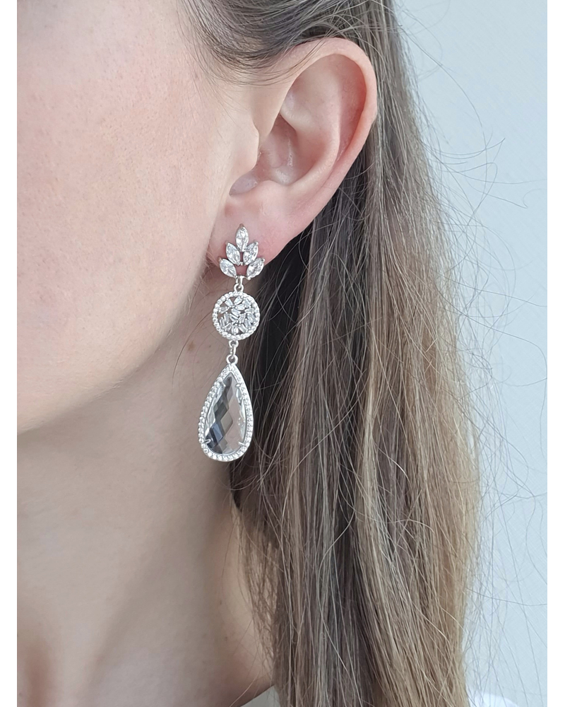 Aros plateados con circonitas y cristal transparente rodeado de circonitas