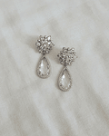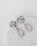 Aros plateados de fantasía, de flor de circonitas y cristal transparente rodeado de circonita