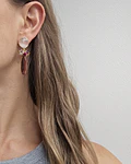 Aros dorados con base de piedra ojo de gato blanca enchapado en oro, con cristal alargado burdeo y racimo.