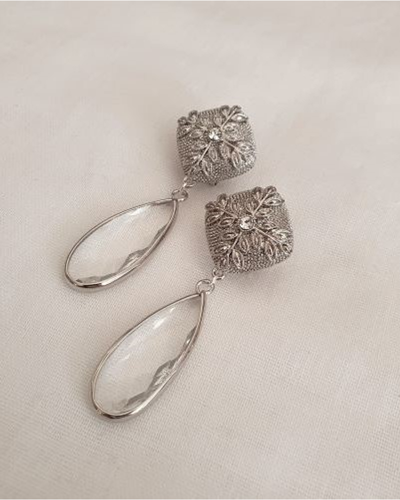 Aros plateados con circonita y cristal transparente