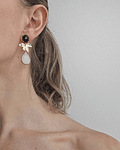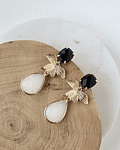 Aros dorados de piedra ágata negra, enchapado en oro, hoja y cristal facetado color blanco.