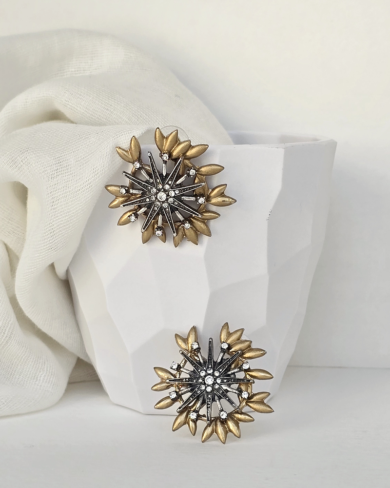 Aros estrella envejecida y hojas doradas.