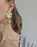 Aros dorados de fantasía de flor amarilla y cristal brillante verde.