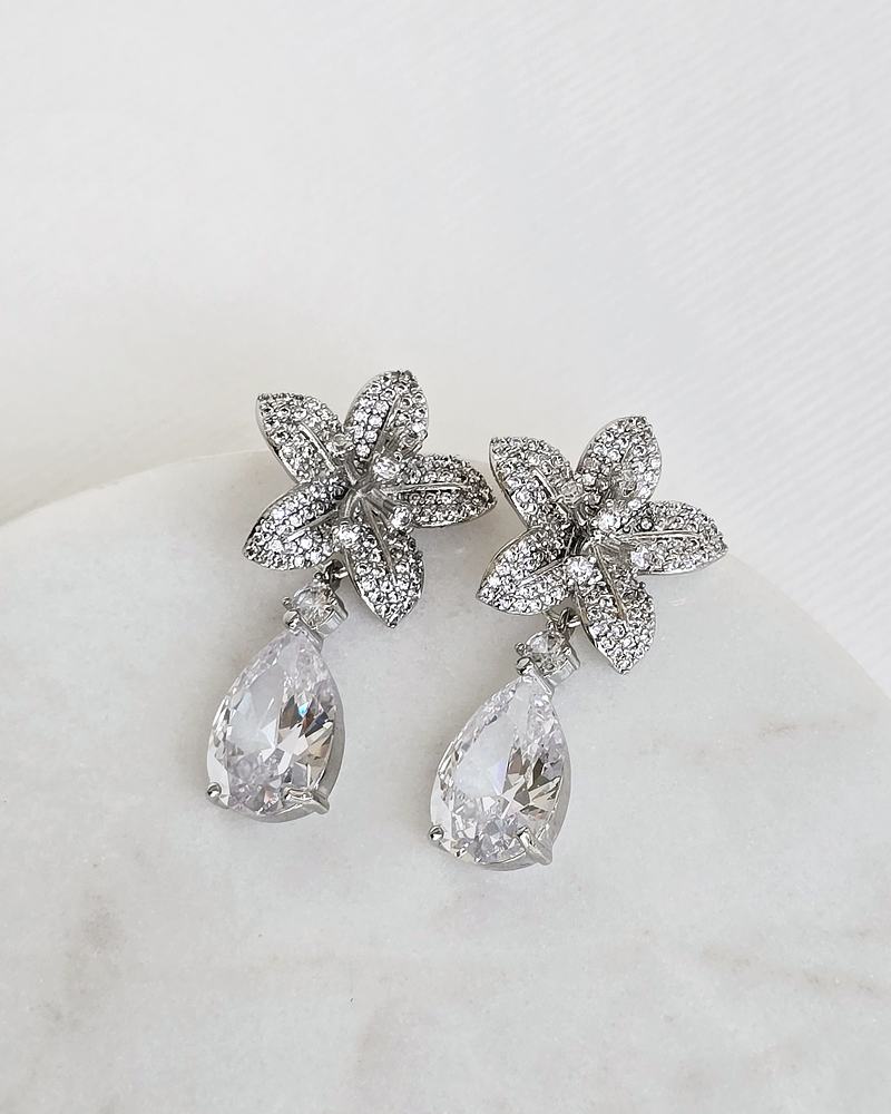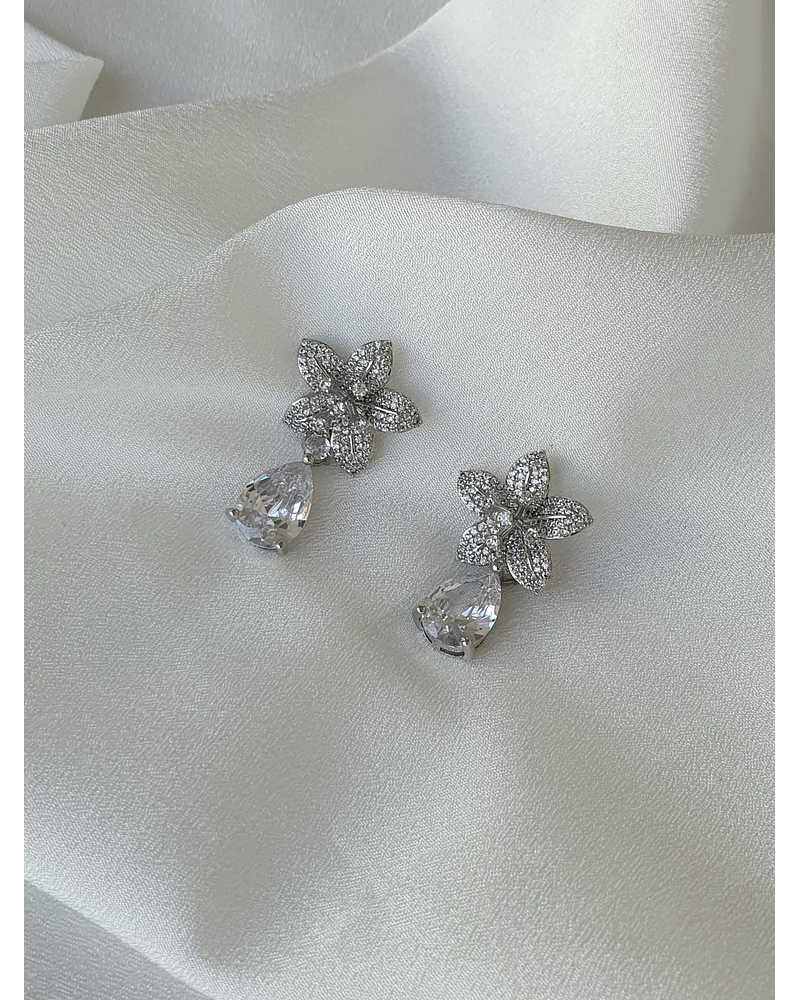 Aros plateados flor de circonitas y colgante de circonita
