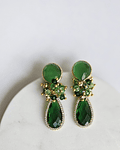 Aros dorados con ojo de gato verde enchapada en oro, libre de níquel y plomo, y cristal verde rodeado de circonitas con racimo de cristales.