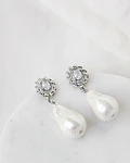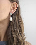 Aros plateados de base vintage con circonita, enchapado en oro blanco y perla barroca de fantasía hecha a mano.