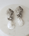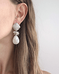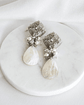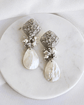 Aros de base vintage con circonita, concha perla y racimo de cristales con perlas naturales.